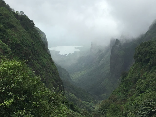 The mist covered the path the moment we made entry into the jungle and since it was cloudy it soon started to drizzle. Monsoons in Pune are best time to trek as everywhere you look its all green and pleastant. It is also easy to trek as you don't get dehydrated and exhausted. Clouds cover the sky providing much needed cool breeze and shade necessary for comfortable trek. As we hiked for few miles, we came across a beautiful lake and after crossing it there was dense forest.